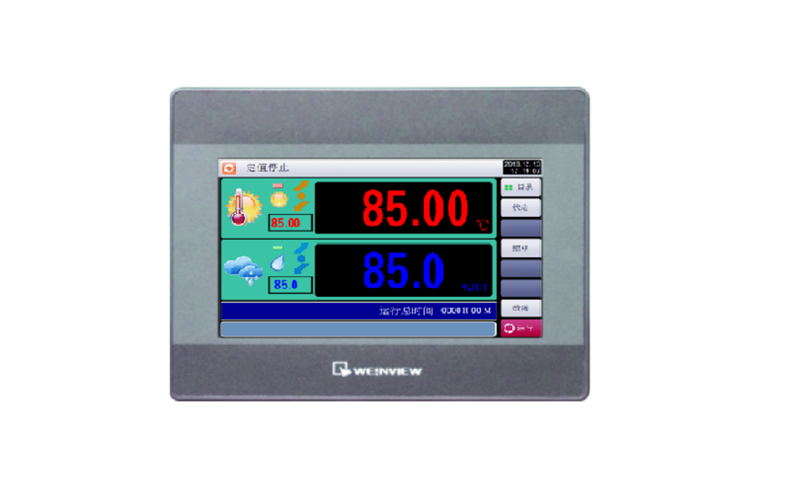 画面显示功能: 7寸分辨率:800*480, 65535真彩色,LED背光显示屏幕; 温湿度设定(SV),实际(PV)值直接显示; 中文/英文语言切换显示,真彩触摸式输入; 可显示执行程序号码、段次、剩余时间及循环次数,运转时间显示;程序编辑以及图形曲线显示; 定值或程序动作状态显示; 故障自动提示,且有相应解决方法提示。 | |